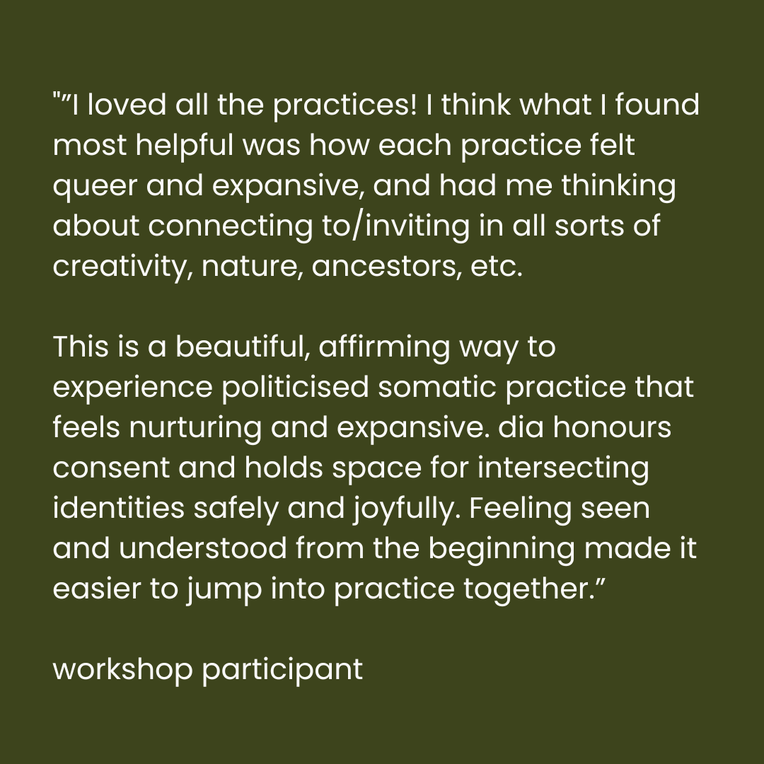 I plan to offer this series again over the coming months. To receive updates about new workshop dates, please join the newsletter. You may also enjoy 'Closer to Home', an upcoming somatic workshop series about Queering Lineage, Ancestral Wisdom & Devotion in Practice. Check it out here!