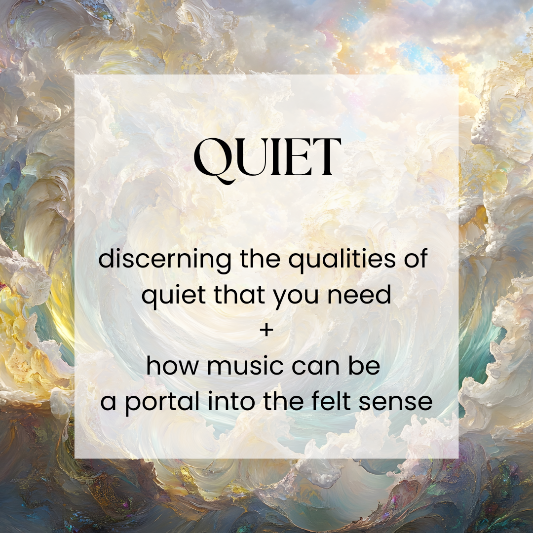 Together, we’ll explore different types of quiet, and how both quiet & music can be an invitation into movement, ancestral connection, spaciousness & your felt sense. You'll leave with simple somatic practices to help you create the conditions for deeper connection with yourself & others.